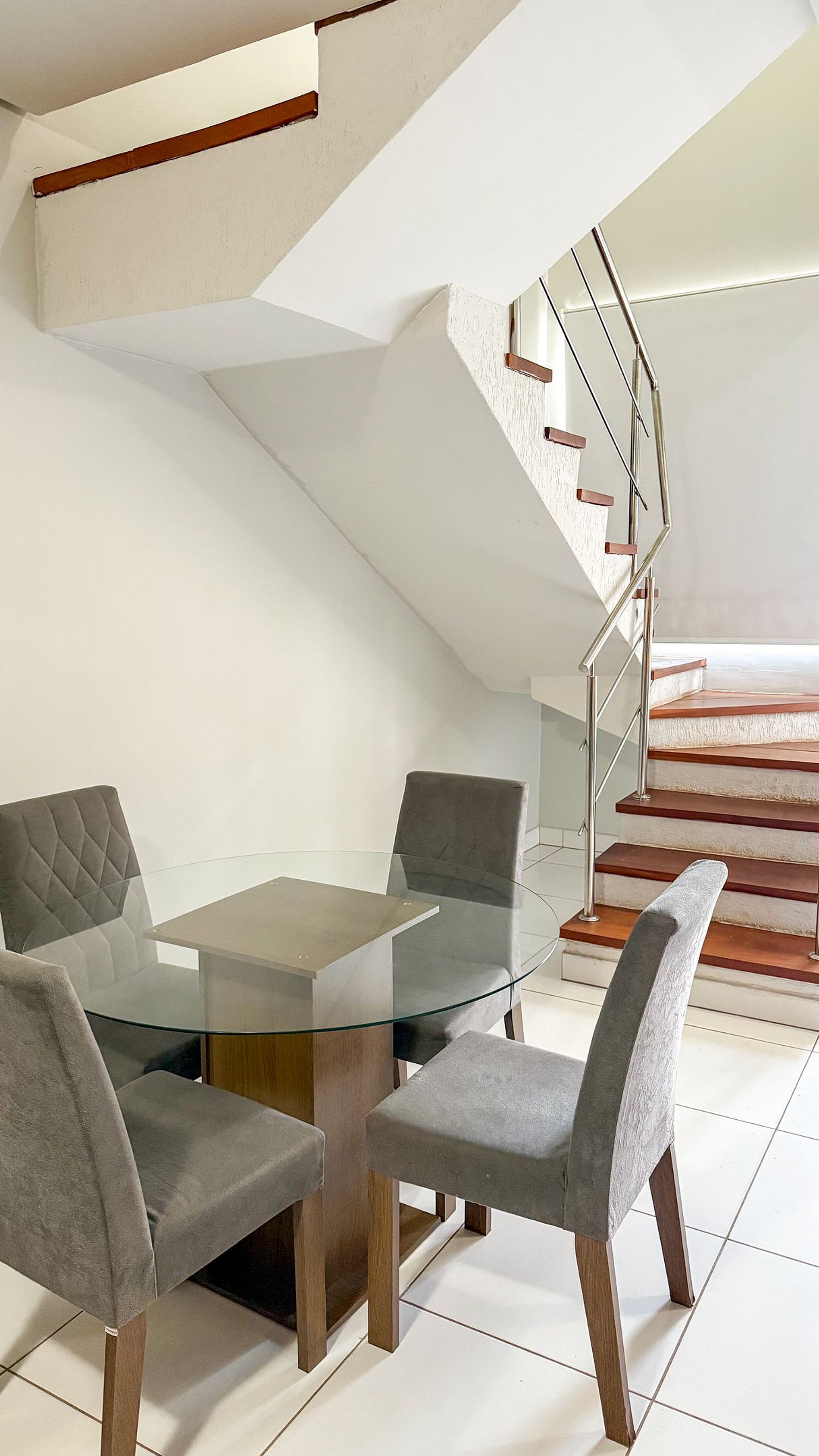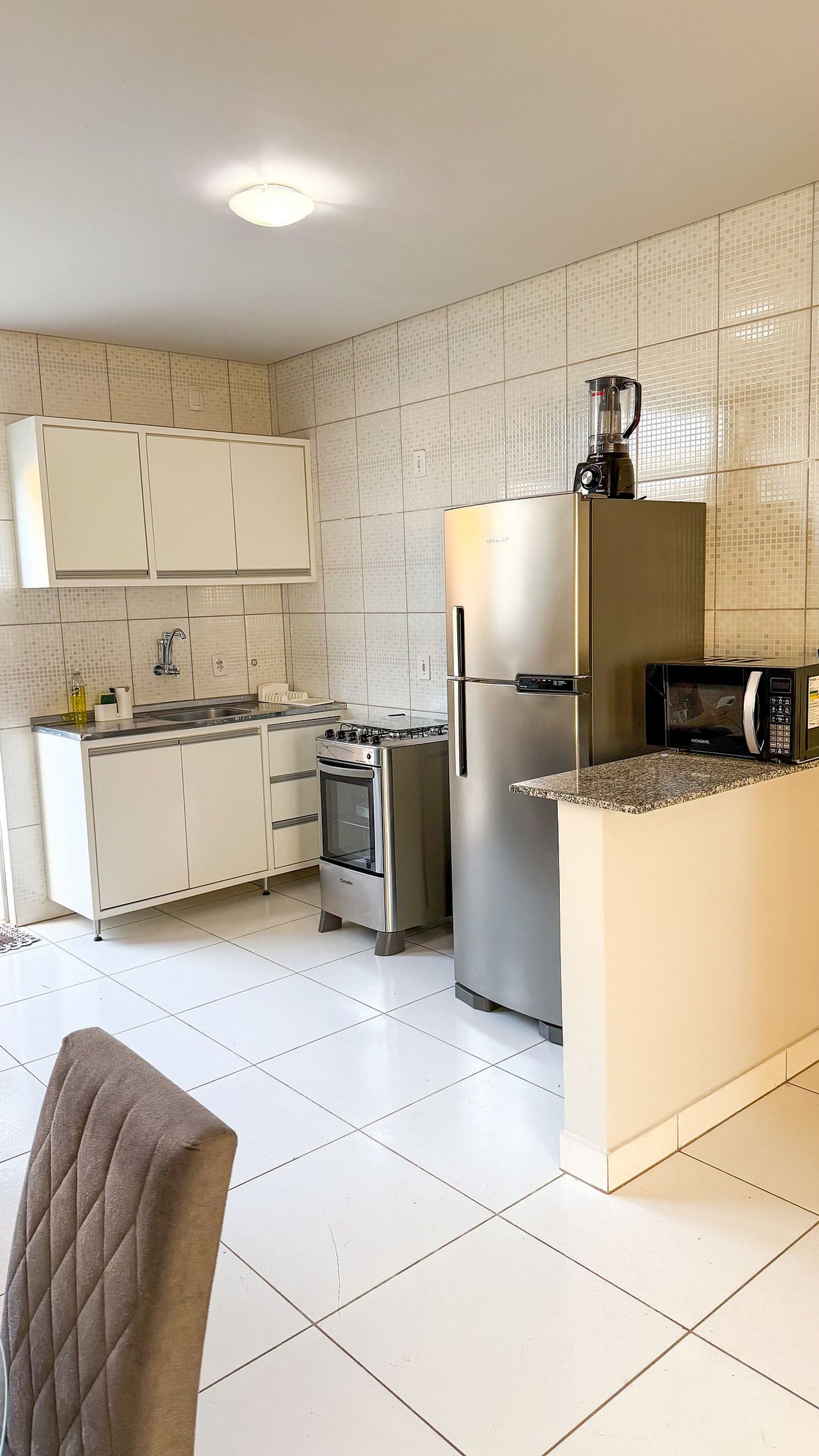 A suíte e demais ambientes estão completos com roupas de cama de qualidade, toalhas macias e todos os utensílios necessários para aproveitar a cozinha de forma prática e funcional.