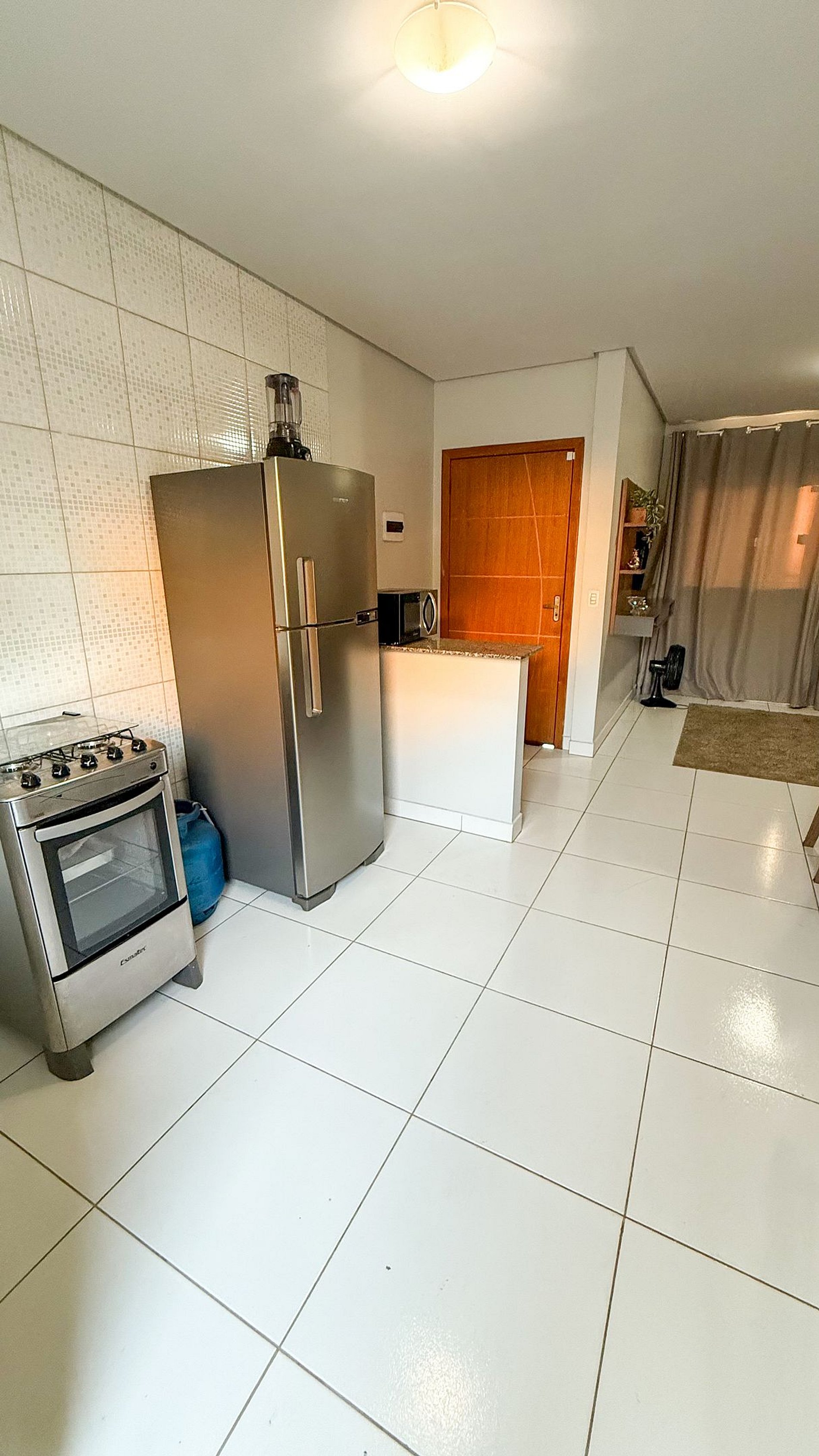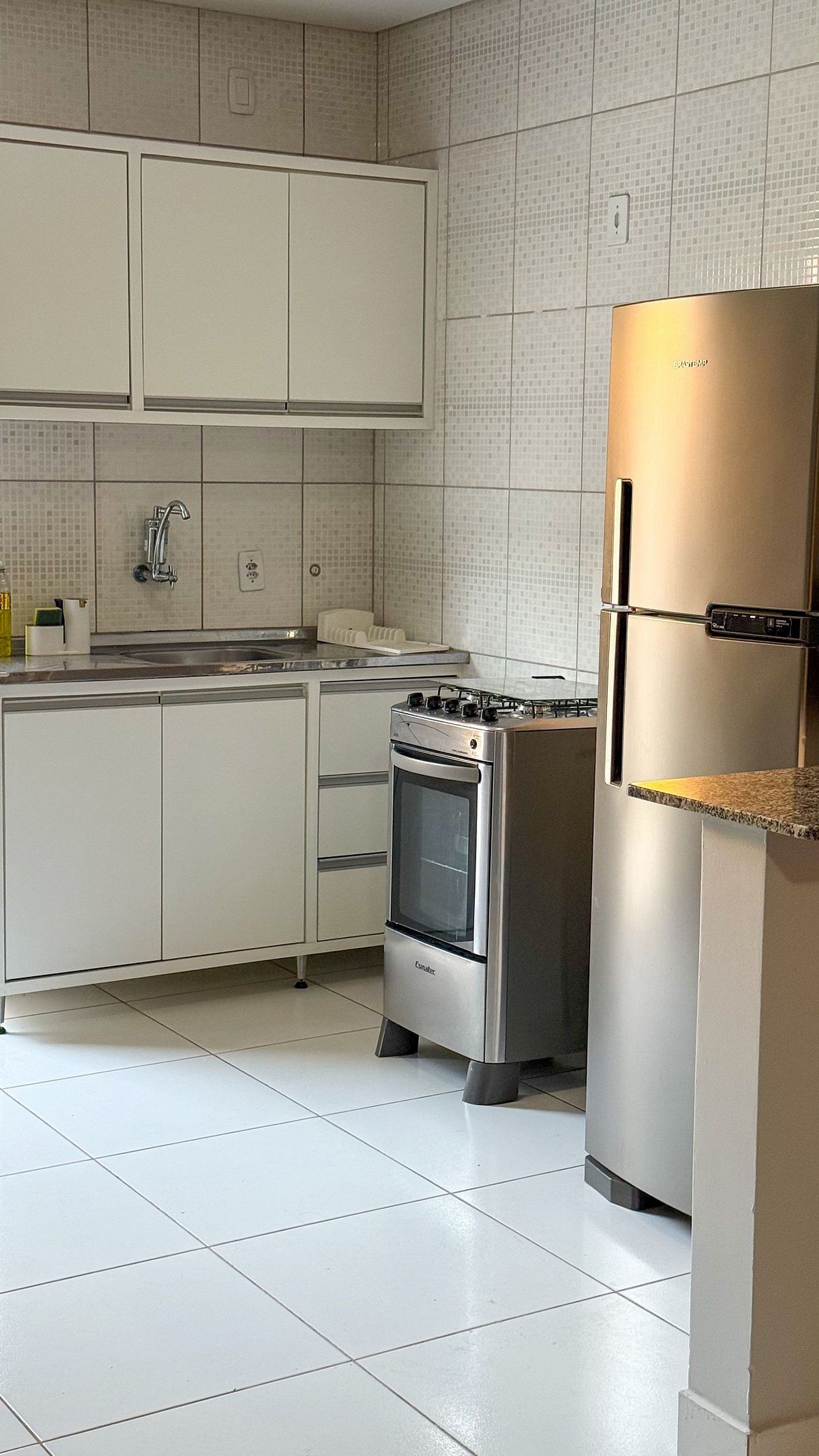 A cozinha está completa, permitindo preparar refeições com praticidade e conveniência.