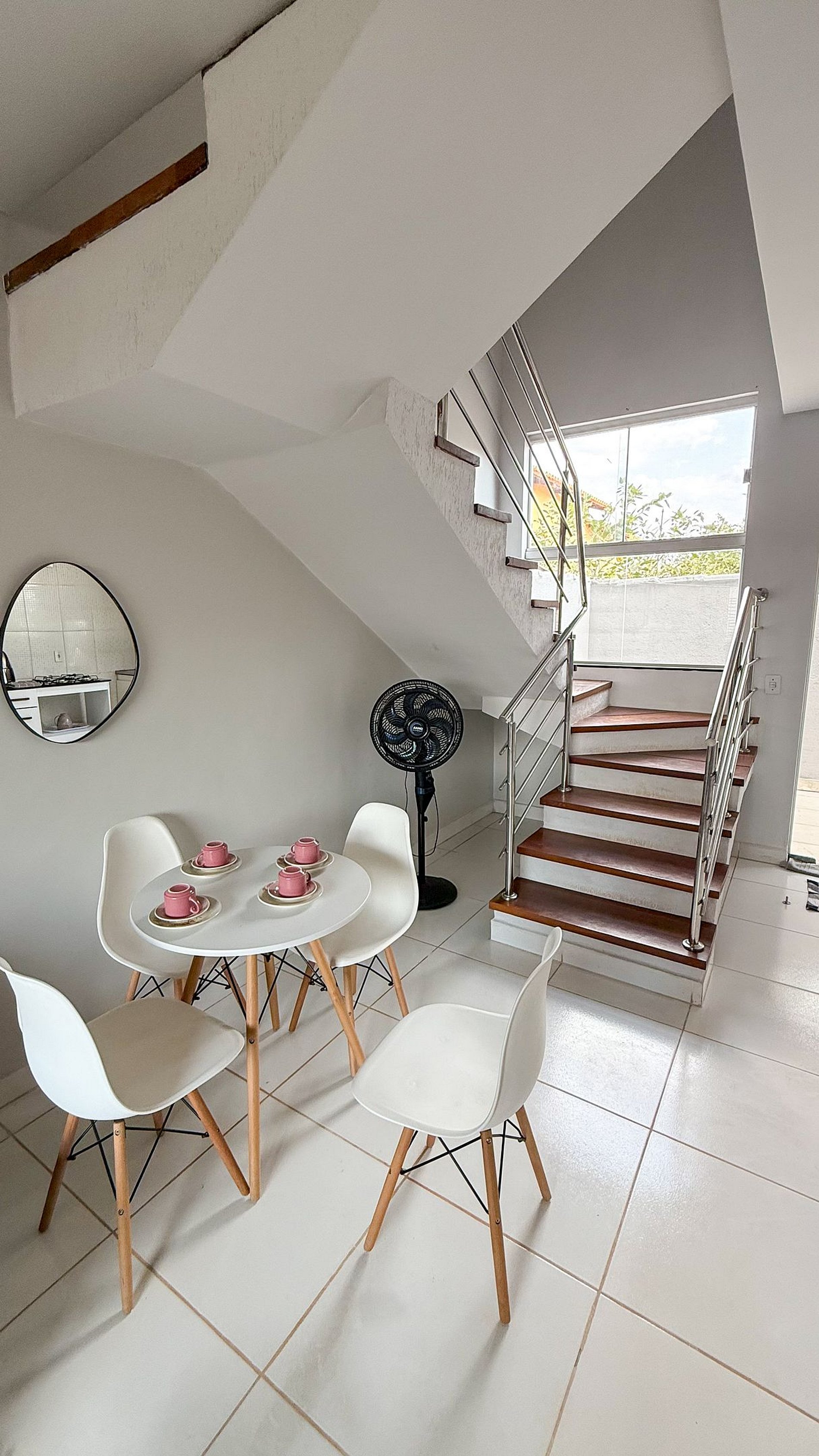 Charmosa casa duplex com 1 suíte equipada com cama queen e enxoval de qualidade. Sala aconchegante com sofá-cama para até duas pessoas e TV Smart. Cozinha completa com mesa, fogão, geladeira, air fryer e utensílios. Banheiro com chuveiro quente e toalhas macias. Área de serviço com máquina de lavar e espaço externo. Garagem sujeita à disponibilidade. O imóvel não possui ar-condicionado, apenas ventiladores.